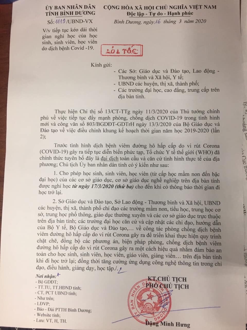 Tiếp tục nghỉ học từ ngày 17/3/2020 đến khi có thông báo đi học trở lại